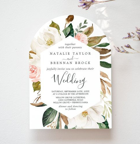 Best Offers Elegant Magnolia White Blush Floral Arch Wedding Invit...