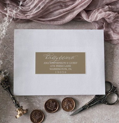 Romantic Champagne Gold Color Guest Address Labels ready to ship the fastest Romantic Champagne Gold Color Guest Address Labels quality products and have the highest number of reviews in the same categoryThese romantic champagne gold color wedding guest address labels are perfect for a simple wedding. The modern classic design features fancy swirls and whimsical flourishes with gorgeous elegant hand lettered typography. Customize each label with the name and address of your guests. 21 labels per sheet. Add each sheet that you need to your cart individually. Each individual label is about 2" x 4" (may be slightly smaller). These invitation addressing labels are perfect for wedding invitation guest addressing save the dates thank you cards bridal showers baby showers Christmas cards and more.