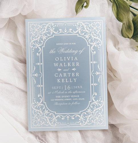 This item is trending! Dusty blue elegant ornate romantic vintage wedding invitation help you save during this period Dusty blue elegant ornate romantic vintage wedding invitation See more about itElegant vintage ornate frame design in cream on soft dusty blue background romantic and sophisticated great for vintage wedding romantic wedding and winter wedding. See all the matching pieces in the collection.