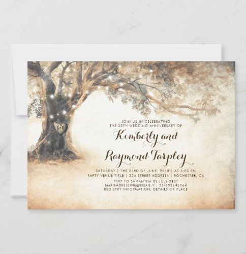 Rustic Oak Tree String Lights Wedding Anniversary Invitation products are in stock Rustic Oak Tree String Lights Wedding Anniversary Invitation quality products and have the highest number of reviews in the same categoryVintage rustic wedding anniversary invitation features old carved heart oak tree and string of lights.
