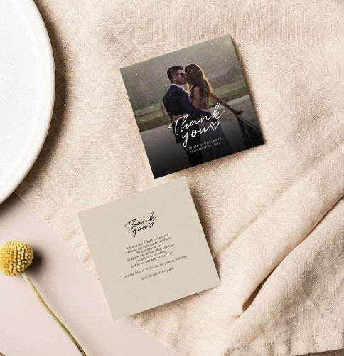 Wedding Photo Hand-Lettered Elegant Thank You Note Card ready to ship the fastest Wedding Photo Hand-Lettered Elegant Thank You Note Card order now with fast delivery service to your hand as soon as possibleA great and thoughtful way to thank your friends family and coworkers who graced you their presence on your your wedding day with this modern photo thank you cards with script hand lettered "thank you" and a love heart.
