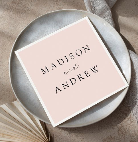 This item is trending! Modern Elegant Blush Wedding Napkins good product Modern Elegant Blush Wedding Napkins See more about itThe elegant personalized blush wedding napkins are perfect for your wedding reception rehearsal dinner engagement party and more! The minimalist blush wedding napkins are perfect for summer fall winter and spring weddings. The design features a chic modern calligraphy script with your names in black lettering against a blush pink background. The design coordinates with our Modern Elegance Blush wedding collection.