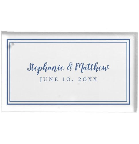 Popular Wedding Simple Minimalist Monogrammed Classic Blue Place Card Holder It’s a great choice Wedding Simple Minimalist Monogrammed Classic Blue Place Card Holder You can order itSimple minimalist and chic monogrammed Wedding table decor features a modern design with a double framed border in Classic Blue on a crisp white background. The modern simple design provides timeless sophistication. Personalize wedding details for your tables in elegant Classic Blue lettering and script. The design centers around the personalized name of the couple and the wedding date. Be sure not to miss coordinating with our matching table cards sold separately.