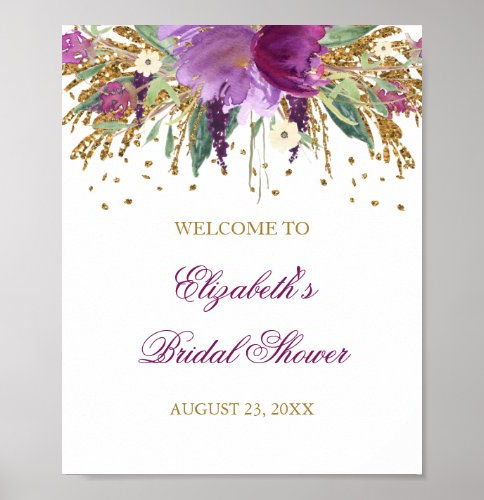 Smart Picks Bridal Shower Welcome Sign Floral Glitter Amethyst