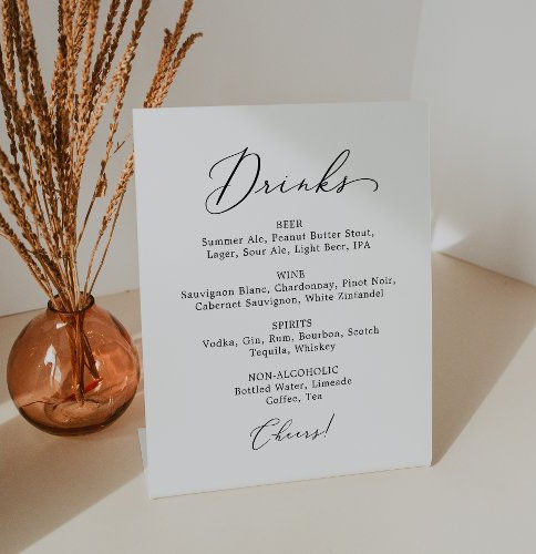 Delicate Black Calligraphy Wedding Drink Menu Pedestal Sign products with good quality you can be confident Delicate Black Calligraphy Wedding Drink Menu Pedestal Sign order now with fast delivery service to your hand as soon as possibleThis delicate black calligraphy wedding drink menu pedestal sign is perfect for a modern wedding. The romantic minimalist design features lovely and elegant black typography on a white background with a clean and simple look.