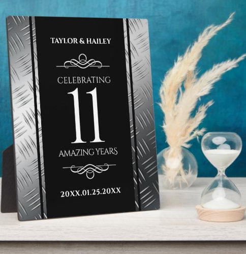 Popular Elegant 11th Steel Wedding Anniversary Celebration Plaque if you are looking for it we recommend it Elegant 11th Steel Wedding Anniversary Celebration Plaque See more about itMake the 11th steel wedding anniversary an unforgettable celebration with this commemorative plaque! Elegant white lettering on diamond plate worn steel and black backgrounds add a memorable touch for this special occasion and milestone. Customize with couple's names and dates of marriage. Design © W.H. Sim. See more at zazzle.com/expressionsoccasions