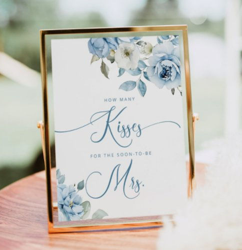 Popular Dusty blue floral how many kisses bridal shower poster It’s a great choice Dusty blue floral how many kisses bridal shower poster It’s in stock and ready to ship.Dusty blue floral how many kisses bridal shower Poster Matching items available.