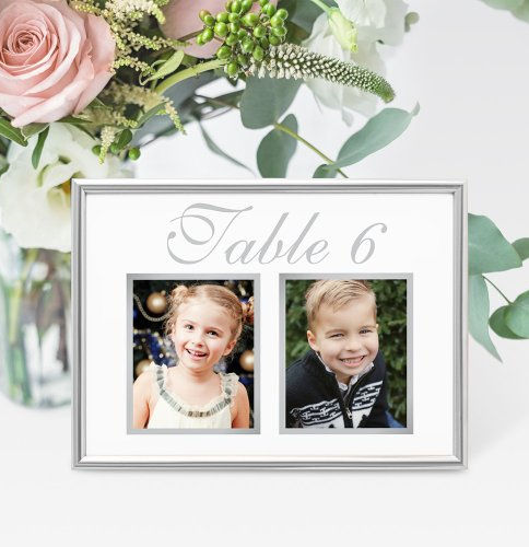 Popular Elegant Wedding Photo Silver White Table Number if you are looking for it we recommend it Elegant Wedding Photo Silver White Table Number It’s in stock and ready to ship.Elegant and unique custom wedding table number cards feature childhood photos of the bride and groom at an age that corresponds with the table number. To customize: type in the table number click "change" by the default photos to upload your own digital or scanned photos and add that individual table number card to your shopping cart. Repeat for all of the table numbers that you need. Silver gray script custom text on a white (can be customized) background color.